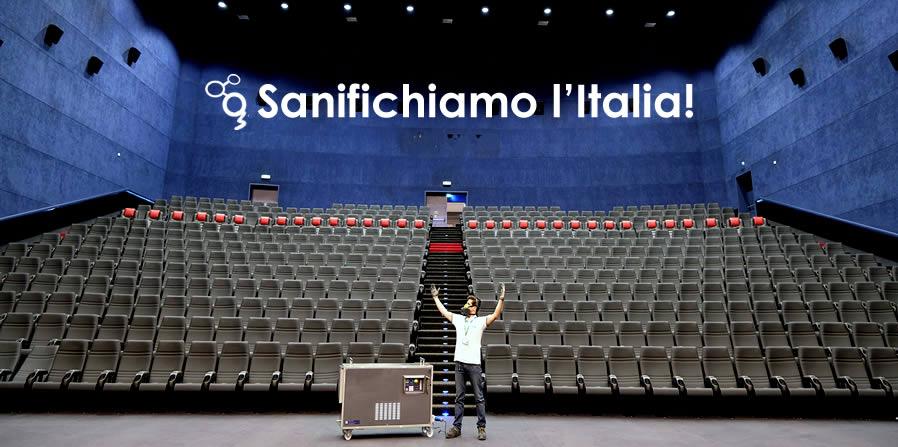 La nostra tecnologia ad ozono è l’unica che riesce a sanificare qualsiasi tipologia di superficie, anche quella di un cinema.